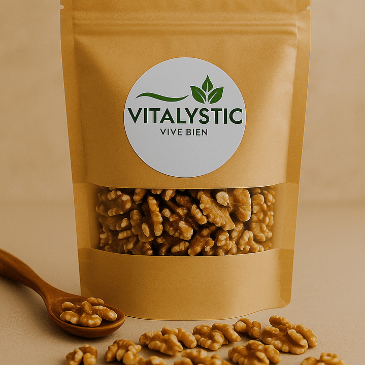 Las Nueces Mariposa Vitalystic son seleccionadas cuidadosamente por su forma entera, sabor suave y textura crujiente. Son una excelente fuente de omega-3 vegetal, antioxidantes, proteínas y minerales esenciales, ideales para cuidar tu salud cardiovascular, cerebral y digestiva.